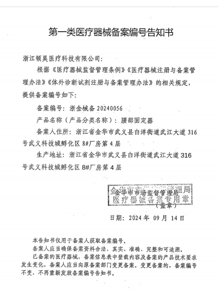 浙江頓昊醫療有限公司位于浙江溫泉之都——武義,是生產頸椎儀等醫療科技用品的專業廠家,其中現在生產的腰、頸椎儀成為國際國內眾多客戶首選產品。在經營中公司實行嚴格的質量管理,為使各類產品領先國內外市場 ,公司擁有先進設備及工藝;技術力量雄厚;檢測設備齊全;質保體系完善。產品出口世界各國,深受國內外客戶歡迎。 企業以質量第一,信譽至上為經營原則。以務實創新高效向上的企業精神,在企業發展的同時,竭誠希望與海內外客戶建立合作伙伴關系,共創繁榮!